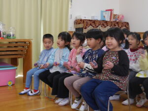 なお、年中「さくら組」と年少「うめ組」の園児は見学でした。