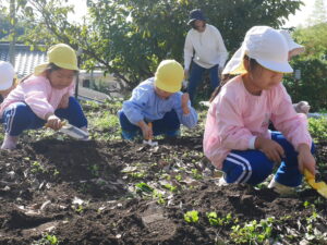 年長「ふじ組」の園児が芋ほりに出かけ出かけました。