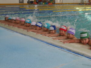 「水泳参観日」がありました。年長「ふじ組」年中「さくら組」は、6月~10月までの5ヶ月、頑張つて参加した「水泳教室」の成果を保護者の方に見ていただきました。