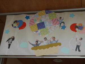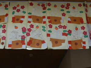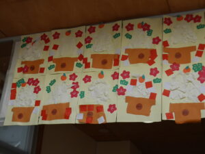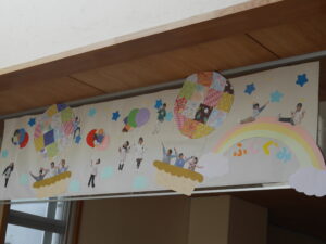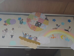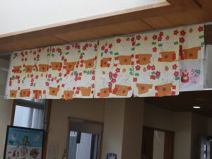 12月の玄関の壁画は「たんぽぽ組」「すみれ組」の作品です。